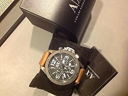 This men's watch combines genuine brown leather and a black-plated case for a bold-yet-refined addition to Armani exchange.